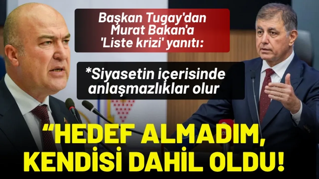 CHP'li Bakan ile lise krizi iddiaları hakkında konuşan Başkan Tugay, “Siyasetin içerisinde zaman zaman anlaşmazlıklar olur. Burada da il yönetiminin oluşmasında son dakikada hiçbirimizin bilgisi olmadan yapılan bazı değişikliklerden rahatsız olduğumu uygun bir dille ifade ettim. Direkt Murat Bakan’ı hedef alan bir söylemim yoktu ama kendisinin dahil olmak istemesiyle beraber görüşmemiz oldu. Ama siyasette böyle şeyler olur ve kendi içimizde çözeriz” şeklinde belirtti.