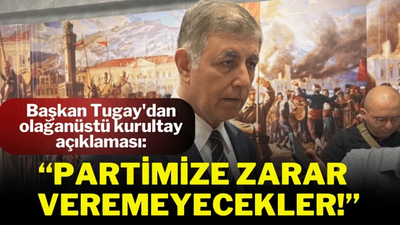 Tugay, partinin haksızlığa uğramasına müsaade etmeyeceklerini ifade ederken, “Biraz önce kurultay delegelerimizle birlikte bilgi paylaşımı oldu. Orada da söylendi. Ne olursa olsun partimizin uğradığı haksızlığa karşı tavır takınacağız. Amacımız partimizdeki kimseyi incitmeden, asla partiden soğutmadan bu süreci atlatmak olacak. Ne karar çıkarsa çıksın sakinlik ve sağduyuyla bu süreci atlatacağımızı düşünüyoruz. Bu CHP’ye zarar vermeyi amaçlayan bir süreç ama zarar veremeyecekler. Kurultayla ilgili, parti yönetimiyle ilgili yeni bir sürece girilebilir. Ama o süreci kimseyi üzmeden geçirmek lazım” diye konuştu.