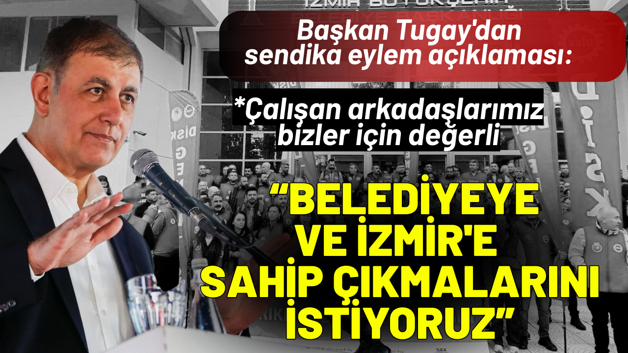 Başkan Tugay, bu tür konuların İzmir Büyükşehir Belediyesi ile konuşulmasından rahatsız olduğunu vurgularken, "Amacımız sendika ile uzlaşmak. Bu ara böyle sıkıntılar oldu ancak uzun vadeli olmayacak, çözeceğiz bu konuları. Arkadaşlarımız sendika ile görüşme yapıyorlar, eğer istediğimiz gibi sonuçlanırsa belki pazartesi eylem kararı duracaktır. Çalışan arkadaşlarımız bizim için değerli, kimsenin aklına başka bir şey gelmesin. Zor günlerimizde belediyeye sahip çıkmalarını istiyoruz, bu en doğal hakkımız, İzmir için istiyoruz. Hizmetin aksamaması lazım. Onlar da mağduriyetleri açısından rahatsızlar, biz de gayret gösteriyoruz en kısa zamanda çözülmesi için. Uzayacağını zannetmiyorum çözeceğiz" şeklinde ifade etti.