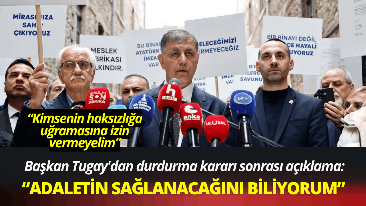 Belediyenin hiçbir mülkünün belediye başkanlarının üzerine tapulu olmadığını, geçici olarak halk tarafından verilen temsiliyet gereği bu mücadeleyi verdiklerini dile getiren Başkan Tugay, “Asla kavga etmekten, çatışmaktan mutlu değiliz. Görevimiz, insanlarımıza hizmet etmek. Belediye başkanlarına ‘şehri emin’ denir. Şehrin emin insanı, emanetlerini geçici olarak teslim alan kişi demektir. Onu korumakla mükellef olan kişi demektir. Bu bina Atatürk’ün İzmir’e verdiği bir binadır. O günden bugüne İzmir’in malıdır. Belediyenin malıdır ve uzun yıllardır hizmet için kullanılan bir binadır. Burası emanettir. Bu emanete hıyanet içinde olmamızı kimse bizden beklemesin. Bizler bunları koruyabildiğimiz, geliştirdiğimiz sürece, teslim aldığımız bayrağı bizden sonrakilere layıkıyla teslim edebildiğimiz sürece vicdanen rahat olacağız. Amacımız hizmet etmek. Başka bir şey değil. Bizi herhangi bir çatışmanın tartışmanın içine kimsenin çekmesini istemiyoruz” açıklamasında bulundu.