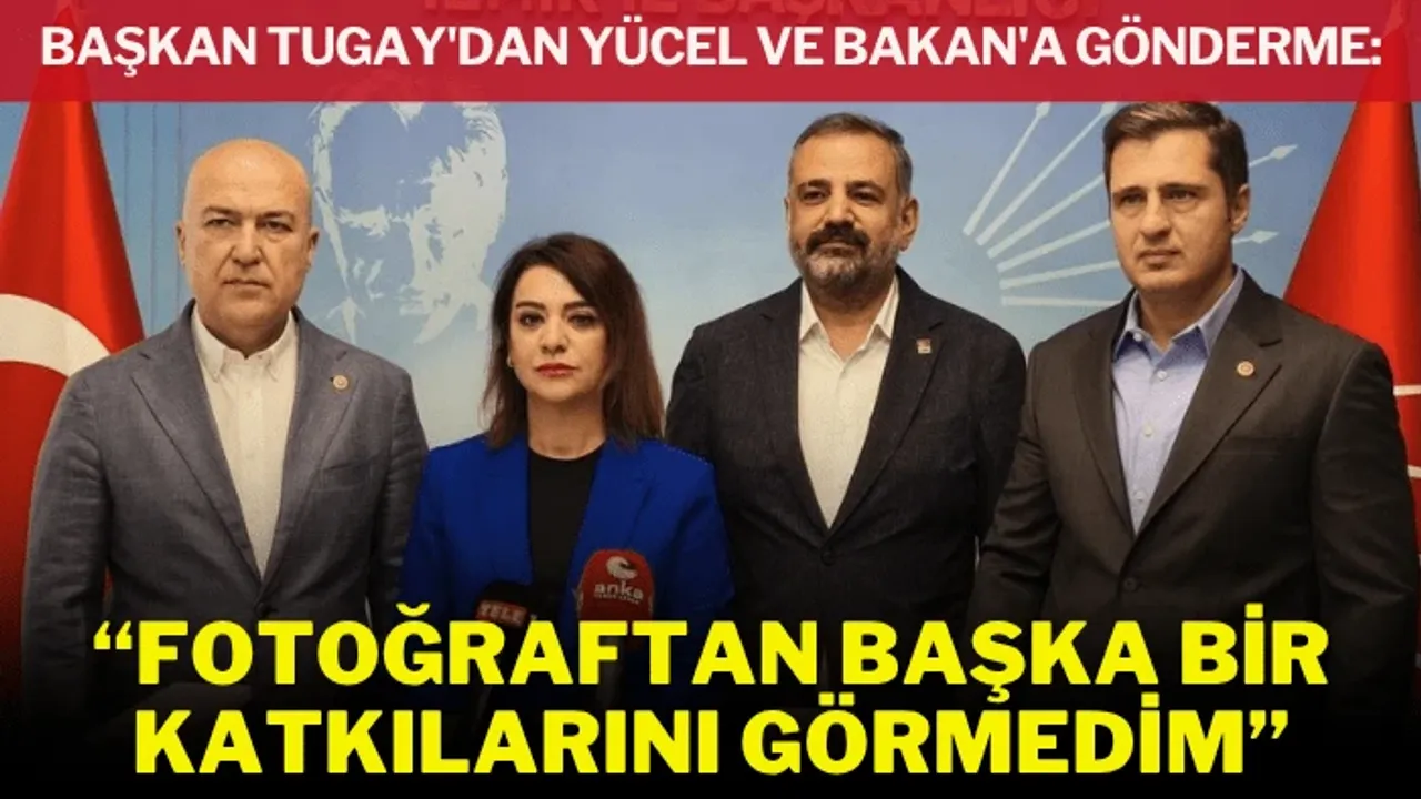 İzmir Büyükşehir Belediyesi’nde 7 gün süren grev süreciyle ilgili de daha önceki ifadelerini hatırlattı. Cumhuriyet Halk Partisi Genel Başkan Yardımcısı Gamze Taşçıer ve Gökhan Zeybek’in sorunun çözümüyle alakalı yakından ilgilerini gördüğünü ifade eden Tugay, “Sendika genel merkeziyle de sıkça görüştüler. Bir çözüm içerisinde oldular. Onlara bu talimatı genel başkan veriyordu. Bu kişiler dışında çözüme katkısı olan kimse yok” dedi.