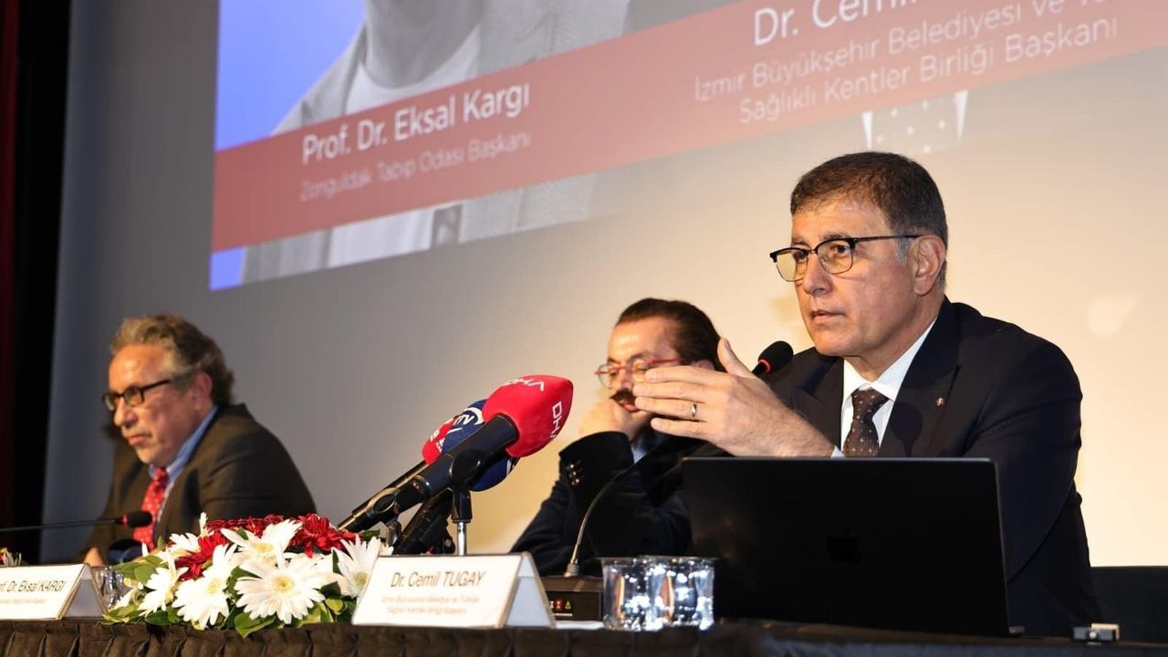 Türkiye Sağlıklı Kentler Birliği Başkanlığı görevini yürüten İzmir Büyükşehir Belediye Başkanı Dr. Cemil Tugay, Zonguldak’ta, Zonguldak Tabip Odası ve Çağdaş Gazeteciler Derneği iş birliği ile düzenlenen “Yerel Yönetimler, Sağlık ve Medya” paneline katıldı. Zonguldak Tabip Odası Başkanı Prof. Dr. Eksal Kargı ve Türk Tabipleri Birliği Merkez Konseyi Genel Sekreteri Prof. Dr. Önder Okay’ın da konuşmacı olarak yer aldığı programda konuşan İzmir Büyükşehir Belediye Başkanı ve Türkiye Sağlıklı Kentler Birliği Başkanı Dr. Cemil Tugay, Zonguldak’a ilk kez geldiğini ve kenti çok güzel bulduğunu belirtti. Konuşmasında koruyucu hekimliğin önemine değinen Başkan Tugay, “İnsanlar hastalığa yakalanmadan önce koruyucu hekimlik devreye girmeli. İnsanları hasta eden nedir? Bunu düşünmemiz lazım. Bu kadar çok hasta olduğumuza göre insanlarımızı koruyamıyoruz demek. Sağlık konusundaki okuryazarlığımız da düşük. Bir çocuğun 18 yaşına kadar düzenli bir aşılama programı var. Aşılamaya harcayacağınız para 175 dolar. O kadar komik bir rakam ki. Bir enfeksiyon tedavisi bile bundan daha fazla. Asıl maharet insanları tedavi etmek değil hasta olmamalarını sağlamaktır. İnsanın hasta olmasına neden olan faktörleri mutlaka gözlemlememiz ve onlara karşı önlem almamız gerekiyor. Tedavi edici sağlık hizmetlerine harcanan para yerine korumak daha akıllıca bir yatırım olmaz mı?” dedi.