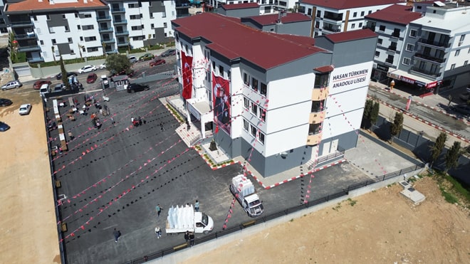 Hasan Türkmen Anadolu Lisesi’nde yaklaşık 300 öğrenci mevcuduyla eğitim öğretime dün itibariyle başlandı. Başkan Türkmen ve eşi Esin Türkmen’in de katıldığı istiklal marşı töreninin ardından öğrenciler sınıflara dağılarak yeni okulda ilk heyecanı yaşadı. Başkan Türkmen kısa bir konuşma yaparak çocuklara olan inancını belirtti. Öğrencilerin daima yanında olduklarını belirten Türkmen, "Her biriniz bizim evlatlarımız ve geleceğimizsiniz, sizlere olan inancımız tamdır. Bu eğitim kurumunda edineceğiniz bilgiler geleceğinizi oluşturacak. Hepinize başarılar diliyorum ve daima yanınızdayım."