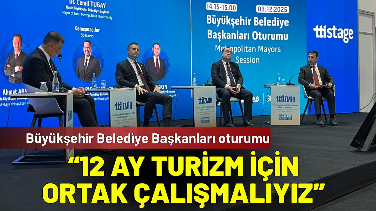 Oturumun açılış konuşmasını yapan Tugay, “Bu oturum da fuarımızın can damarı buluşmalardan biri. Çünkü sahnede, turizmin lokomotifi olan kurumlar yani belediyelerimiz var. Muğla, Manisa ve Balıkesir Büyükşehir Belediye Başkanlarımızı konuk ediyoruz. Bacasız sanayimiz turizme en büyük ivmeyi kazandıran kurumlar, yerel yönetimlerdir. Ege Bölgesi, Türkiye turizminin ana damarlarından biri. Ve bizler de bölgenin en gözde turizm beldelerini barındıran büyükşehirlerin belediye başkanları olarak burada bulunuyoruz. Turizmi geliştirmek için sorumluluğumuz büyük” ifadelerini kullandı.
