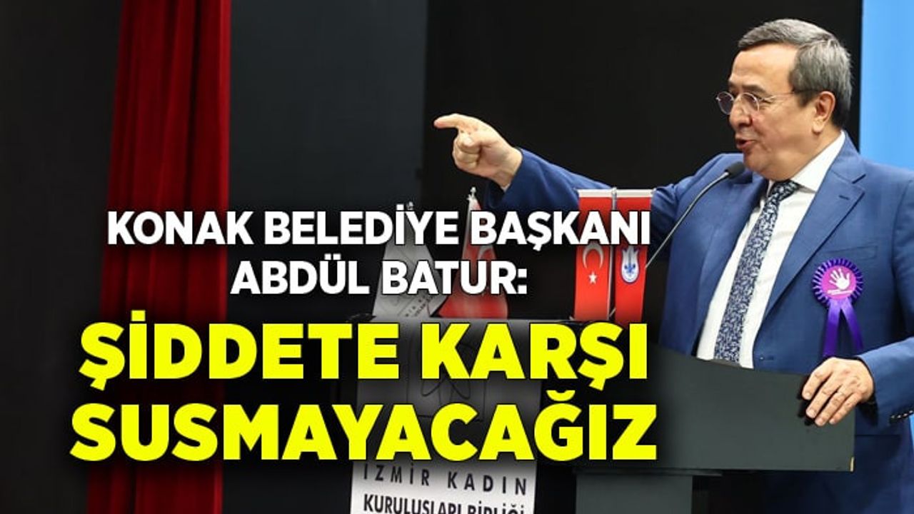 Etkinliğin açılış konuşmasını yapan Konak Belediye Başkanı Abdül Batur, kadına yönelik şiddetin insanlığa ve ülkeye ihanet demek olduğuna dikkat çekti. Şiddete karşı susmayacaklarını dile getiren Başkan Batur, şöyle konuştu: