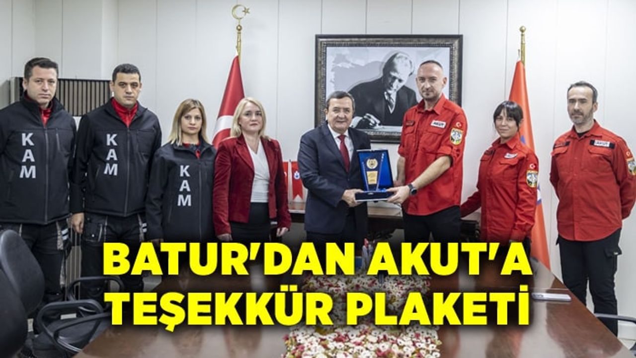 AKUT Derneği İzmir Lideri Ramazan Ergut'a teşekkür plaketi takdim eden Başkan Batur, "Bu süreçte emeği olan herkese teşekkür ediyorum. Doğal afetlerin yarattığı etkileri maalesef son yıllarda daha sık ve yakından görüyoruz. Biz bu konuyu ciddiye alıyor, yerel yönetim olarak vatandaşın yanında olacak düzenlemeleri yapmaya gayret ediyoruz. Bu konuda AKUT baştan beri bize yardımcı oldu. AKUT ülkemizin en önemli kurtarma ekiplerinin olduğu bir kurum. Bize de bilgilerini, tecrübelerini paylaştığı için teşekkür ediyoruz. Plaketimizin AKUT'ta bir anı olarak kalması bizim için onurdur" diye konuştu.