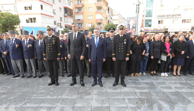 İlk program Sevgi Yolu Atatürk Anıtı önünde düzenlendi. Anma programına Bayraklı Belediye Başkanı Serdar Sandal, İlçe Kaymakamı İbrahim Süha Karaboran, askeri erkan, siyasi partilerin temsilcileri ve sivil toplum kuruluşlarının temsilcileri katıldı. Atatürk anıtına çelenk sunumu yapıldı.
