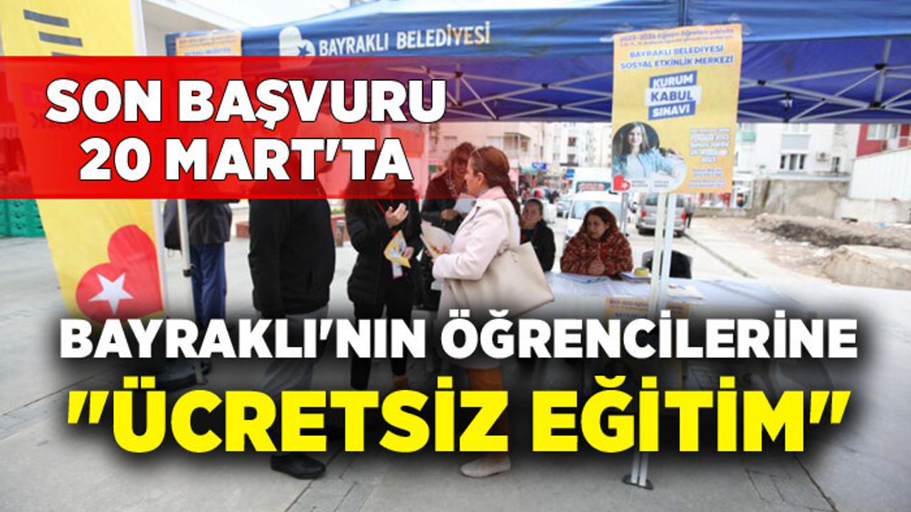 Yetiştirdiği başarılı öğrencilerle eğitime büyük katkı sağlayan Bayraklı Sosyal Etkinlik Merkezi önümüzdeki eğitim öğretim yılı için çalışmalarını hızlandırdı. 19 sınıf ve bin 200 öğrenci kapasiteli eğitim merkezi için yeni sezonda da 7'nci, 8'inci, 11'inci ve 12'nci sınıflara öğrenci alımı yapılacak. Bu kapsamda 2023-2024 eğitim öğretim yılında da ücretsiz eğitim alacak öğrenciler kurum kabul sınavı ile belirlenecek. Konuyla ilgili Bayraklı Sevgi Yolu'nda stant kuran ekipler öğrencileri bilgilendirerek, başvuruları aldı. Sınav için son başvuru 20 Mart'a kadar yapılabilecek, sınav ise 25 Mart'ta gerçekleştirilecek. Öğrenciler, ücretsiz eğitim fırsatı ile ilgili 0232 935 0 335 telefon numarasından bilgi alabilecek.