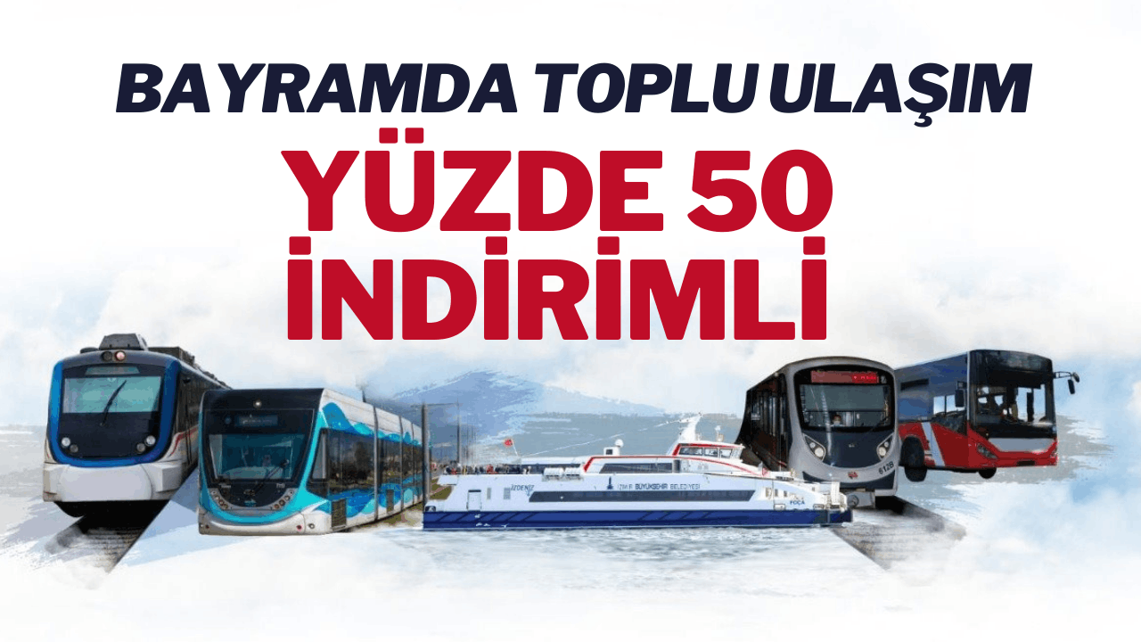 İzmir Büyükşehir Belediyesi, Ramazan Bayramı’nda kent içi toplu ulaşımda düzenlemelere gitti. İzmir Büyükşehir Belediyesi’ne bağlı toplu ulaşım kurum ve kuruluşları Ramazan Bayramı süresince İzmir Büyükşehir Belediye Meclisi kararı doğrultusunda yüzde 50 indirimli hizmet verecek. Cumhurbaşkanlığı Kararnamesi doğrultusunda İzmir Büyükşehir Belediyesi - TCDD ortaklığıyla işletilen İZBAN’nda ulaşım hizmetleri ücretsiz olacak. İzmir Büyükşehir Belediyesi ESHOT Genel Müdürlüğü de mezarlıklara özel otobüs seferleri düzenleyecek.