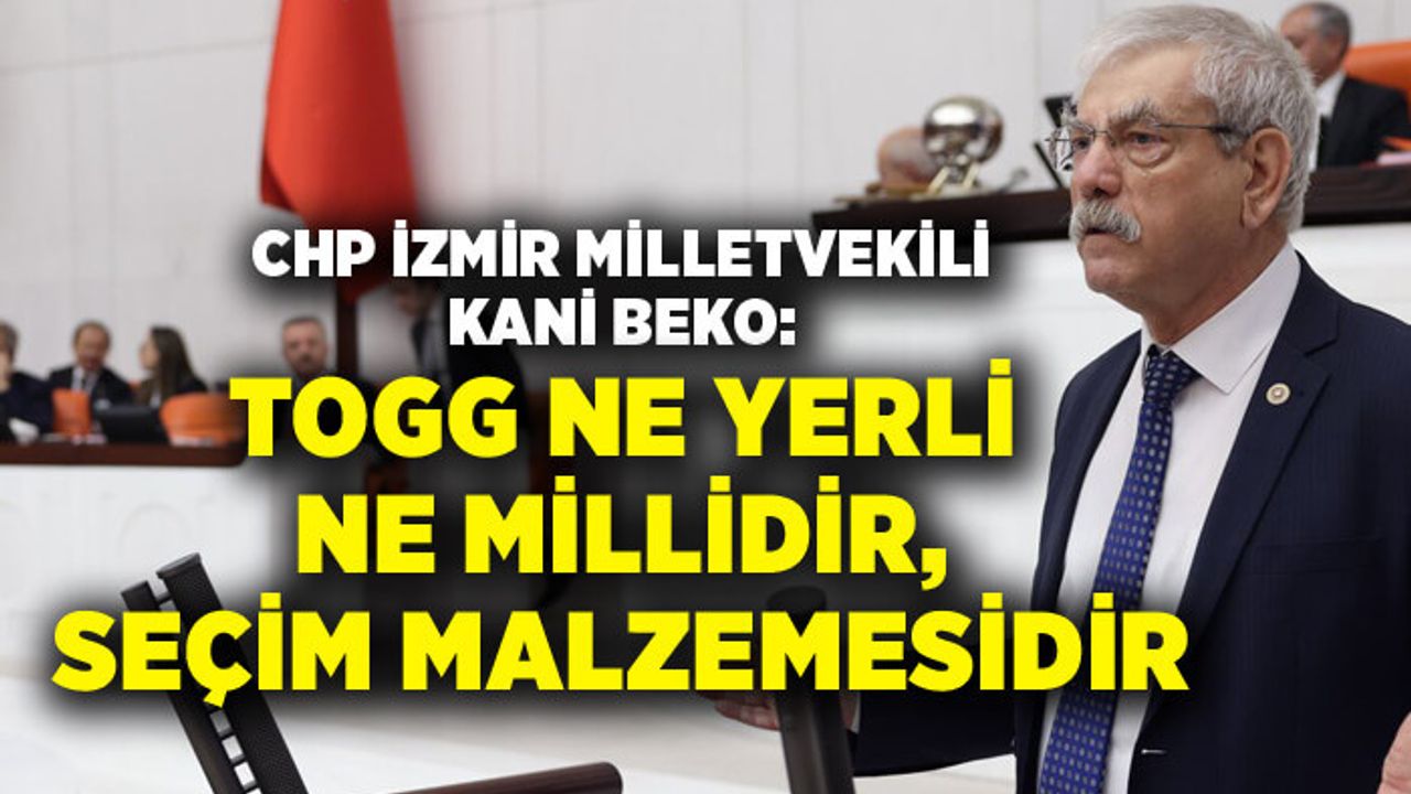 Yaptığı yazılı açıklama ile iktidarı TOGG üzerinden sert bir dille eleştiren CHP İzmir Milletvekili Kani Beko, "TOGG arabası almak isteyen bir işçi kaç yıl çalışması gerekiyor? Biz çalışırken bir ev birde Anadol veya Murat marka araba alabiliyorduk. Aslında ne ilk ne yerli malı ne de yurdun malı. Her parçası yabancı olan bu araç tam bir kandırmaca ve aldatmaca ürünüdür" dedi.