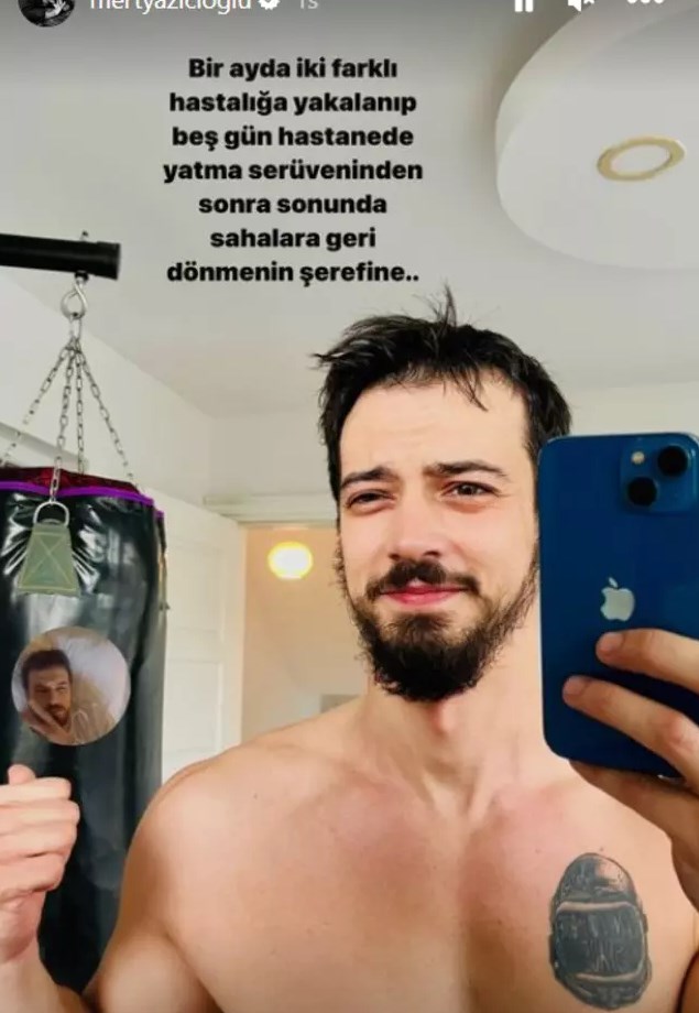 Spor yaptığı anlardan bir karesini takipçileri ile paylaşan Yazıcıoğlu üstsüz pozuyla kısa sürede gündem oldu. Ünlü oyuncu karesine; 'Bir ayda iki farklı hastalığa yakalanıp beş gün hastanede yatma serüveninden sonra sonunda sahalara geri dönmenin şerefine' notunu düştü.