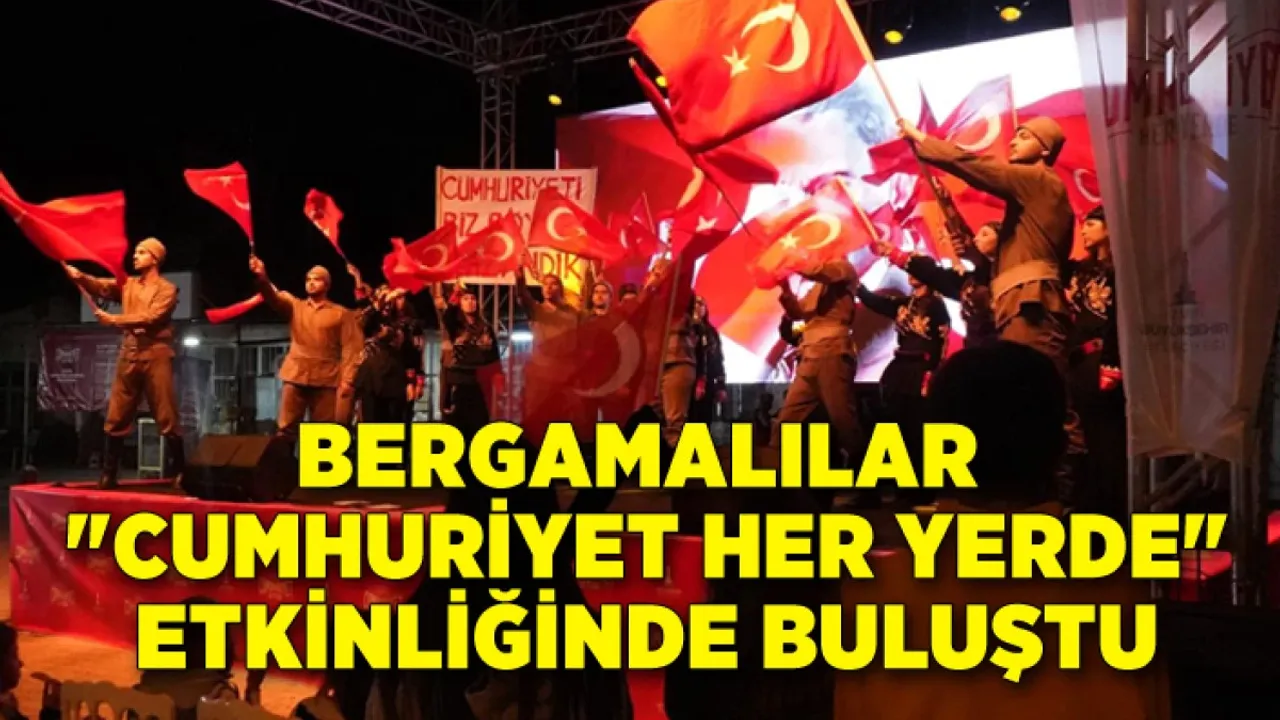 Cumhuriyet Bayramı'nın 102'nci yılı kutlamaları nedeniyle İzmir Büyükşehir Belediyesi tarafından farklı ilçelerde düzenlenen "Cumhuriyet Her Yerde" etkinlikleri tüm hızıyla sürüyor. Bergama Ayaskent Mahallesi'ndeki kutlamalar, Bergama Belediye Bandosu eşliğinde saygı duruşunda bulunulması ve İstiklal Marşı'nın okunmasıyla başladı. Kutlamalara Bergama Belediye Başkanı Prof. Dr. Tanju Çelik ve İzmir Büyükşehir Belediyesi Meclis Üyesi Çiler Gürel de katıldı.