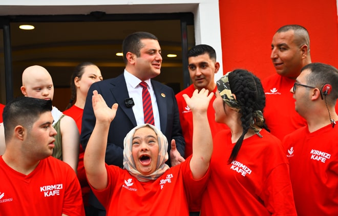 Yoğun katılım ile gerçekleşen açılışa Torbalı Kaymakamı Ercan Öter, Torbalı Belediye Başkanı Övünç Demir, Torbalı Cumhuriyet Başsavcısı İsmail Güngör, Cumhuriyet Halk Partisi İlçe Başkanı Şengül Babacan, Torbalı Belediyesi meclis üyeleri, STK temsilcileri ve çok sayıda vatandaş katıldı. ÇoğunluğuDownsendromlu10 engelli bireyin istihdam edildiği Kırmızı Kafe, onların rahat bir şekilde hareket edeceği şekilde tasarlandı.