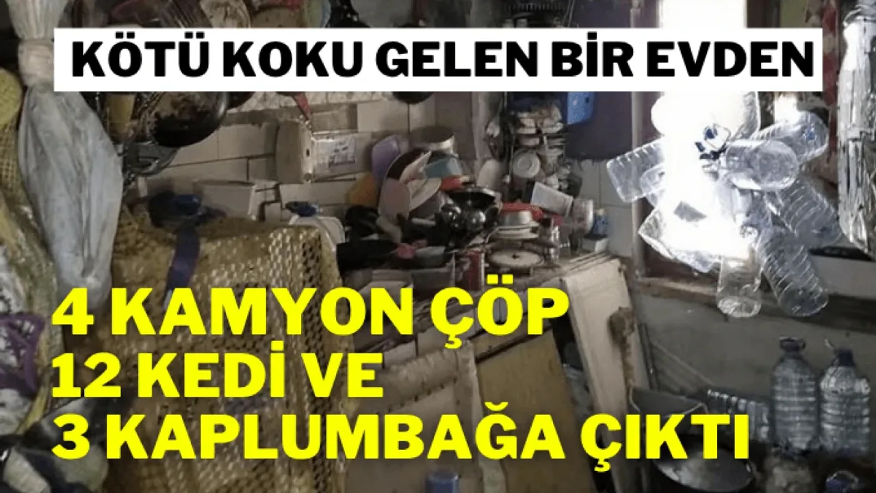Orta Mahalle 209 Sokak'ta yaşayan A.D.'ye ait evden gelen kötü koku üzerine, vatandaşlar durumu yetkililere bildirdi. İhbar üzerine adrese gelen Efeler Belediyesi, Aydın Büyükşehir Belediyesi ile İl Emniyet Müdürlüğü Çevre Doğa ve Hayvanları Koruma Büro Amirliği ekipleri, çilingir yardımıyla kapıyı açtı. Ekiplerin evde yaptığı çalışmada, 4 kamyon çöp çıkarıldı. Ayrıca, çöplerin içinden 12 kedi ve 3 kaplumbağa bulundu. Kedileri, Aydın Hayvan Hakları Eğitim Hareketi Derneği Başkanı Jale Koç sahiplenirken, kaplumbağalar ise Doğa Koruma ve Milli Parklar Müdürlüğü ekiplerine teslim edildi. Anne A.D. ve oğlu E.D. ifadeleri alınmak üzere ekipler tarafından polis merkezine götürüldü.