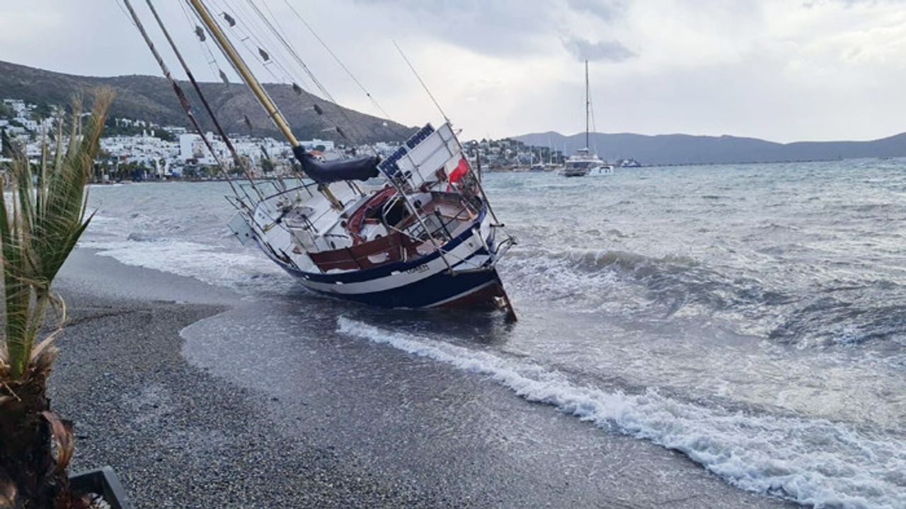 Bodrum’da sabah saatlerinden itibaren güneyli yönlerden etkili olan kuvvetli rüzgar hayatı olumsuz etkiliyor. Sahil Güvenlik ekipleri, bugün saat 06.00 sıralarında, Kumbahçe sahili açıklarında kaçakları taşıyan bir yelkenli tekne olduğunu fark edip, peşine düştü. Sahil Güvenliğin geldiğini fark eden kaçaklar, dümeni karaya doğru kırdı. Kıyıya yaklaştıklarında suya atlayan kaçaklar karaya çıkıp, kaçtı. Kaçakların terk ettiği 'Polonya' bayrağı çekili 9 metrelik 'Loren' isimli yelkenli tekne ise kıyıya vurup, hasar gördü.