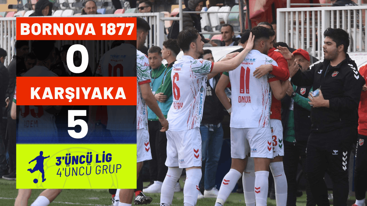 Bornova Aziz Kocaoğlu Stadı'nda oynanan karşılaşmada konuk ekibin gollerini 13'üncü dakikada Onur, 68'inci dakikada Mücahit, 76'da Ömer Faruk, 80'de Alpay, 84'te Murat attı. Bu sonuçla puanını 67 yapan Karşıyaka'nın sezonu ilk 3 sıra içinde bitirmesi kesinleşti. Grupta 21 puanı olan Bornova 1877'nin ise kümede kalması mucizelere kaldı.