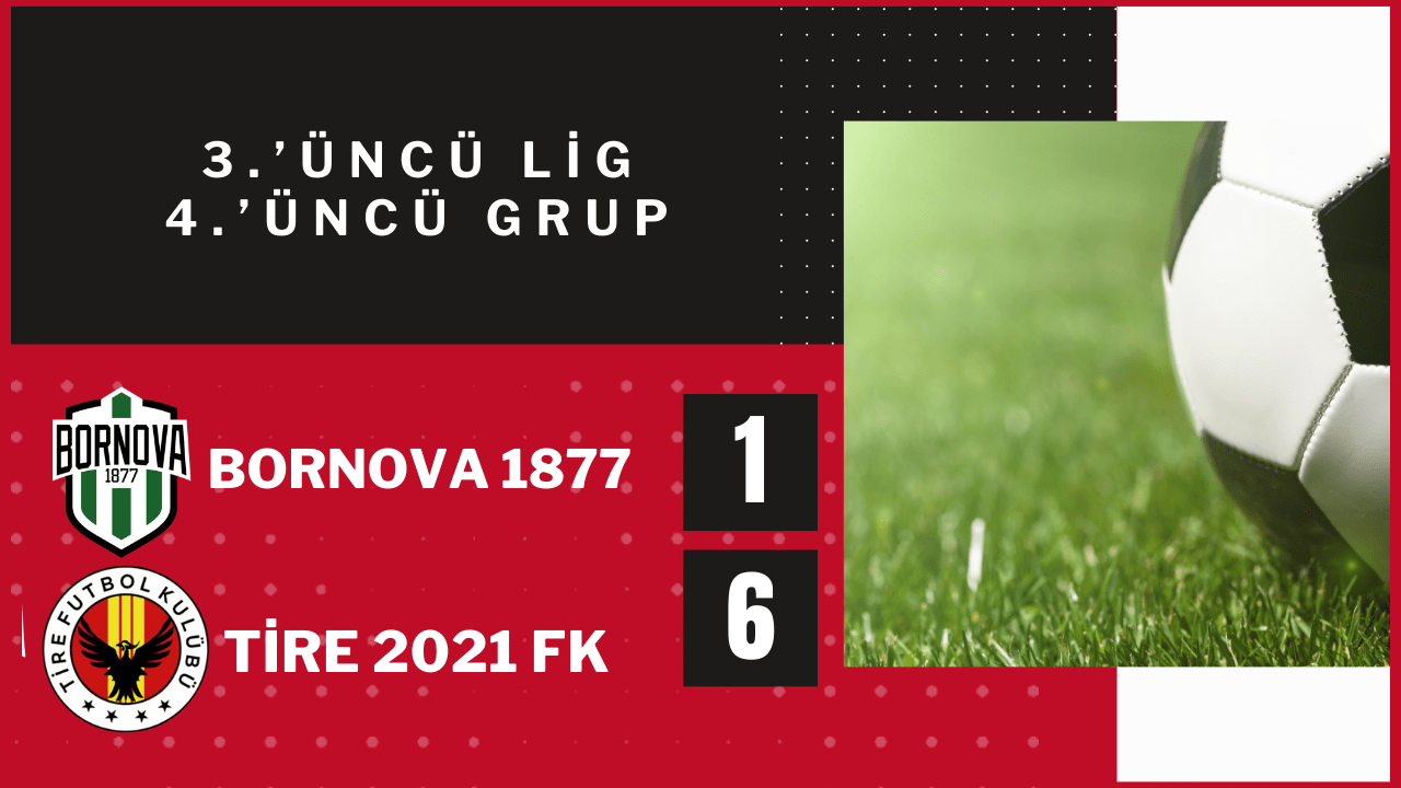 Tire 2021 FK, 79’uncu dakikada Mustafa ile golleri dörtledi: 1-4. Bora 86’da misafir takımın 5’inci golünü atarken, maçta son sözü 90’da Özgür söyledi. Bu sonucun ardından Bornova 1877 takımı 7 puanla düşme hattında kaldı. Tire 2021 FK ise puanını 19’a çıkardı ve Play-Off yolunda umutlandı.