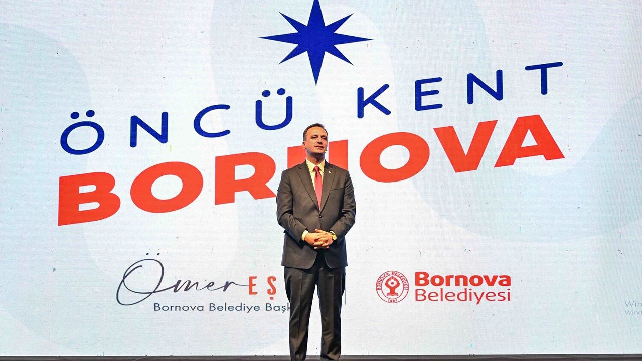 Bornova Belediye Başkanı Ömer Eşki, sahnede tam 66 dakika süren sunumunda iki yıllık çalışmaları anlattı. Eşki, Bornova’yı kentsel dönüşüm, yeşil dönüşüm ve dijitalleşme ekseninde geleceğe taşıdıklarını vurguladı. Önümüzdeki 5-10 yıl içinde tüm belediyeler için bu süreçlerin belirleyici olacağını vurgulayan Eşki, Bornova’nın bu alanlarda öncü olmasını istediklerini ifade etti.