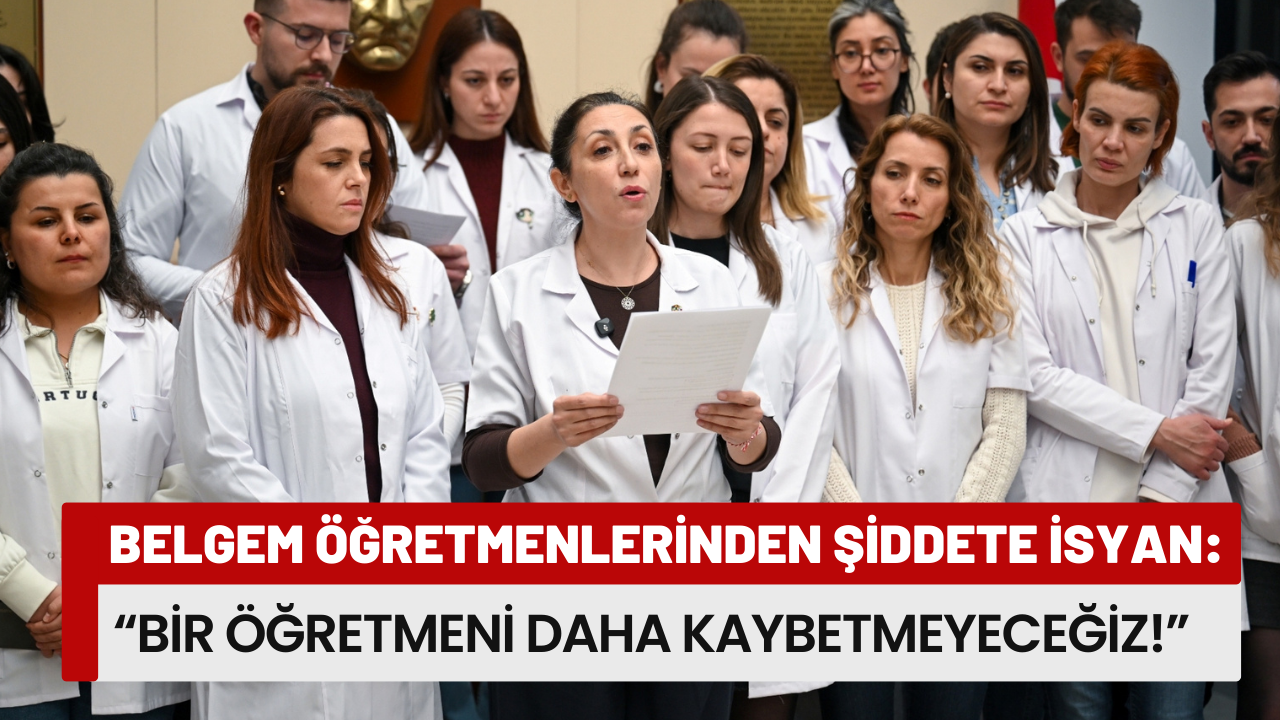 BELGEM öğretmenleri açıklamanın ardından sloganlarla tepkilerini sürdürerek, eğitimde şiddete karşı sessiz kalmayacaklarını belirtti.