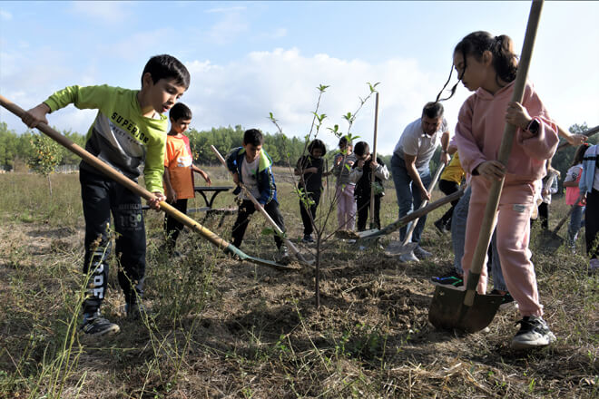 Kadim ağaçları beton binalara bırakmayarak doğayla uyumlu tarım projelerine öncülük eden Bornova Belediyesi, Yaka Mahallesi'nde bulunan Doğal Tarım Çiftliği'nde Cumhuriyetin 100. Yılına özel etkinlik düzenledi. Yıldırım Beyazıt İlkokulu öğrencileriyle birlikte 50 nar ve 50 ayva olmak üzere toplamda 100 fidanı toprakla buluşturdu. Minik ellere Bornova Belediyesi Tarımsal Hizmetler Müdürlüğü çalışanları ile etkinliğe katılan muhtarlar da eşlik etti.