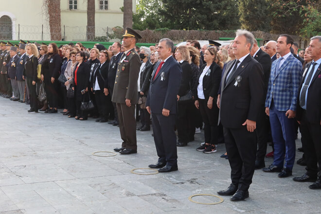 Bornova Belediye Başkanı Dr. Mustafa İduğ, Atatürk'ün "Beni görmek demek mutlaka yüzümü görmek demek değildir. Benim fikirlerimi, benim duygularımı anlıyorsanız ve hissediyorsanız, bu kafidir" sözünü hatırlatarak "Bağımsızlığı, cumhuriyeti, demokrasiyi, devrimleri 57 yıllık ömrüne sığdıran Mustafa Kemal Atatürk'ü ve silah arkadaşlarını rahmetle ve saygıyla anıyorum. Atatürk hiçbirimizin kalbinde ölmedi. Bizler, gençler, kadınlar bu ülkede hep beraber onu her zaman yaşatacağız" dedi.