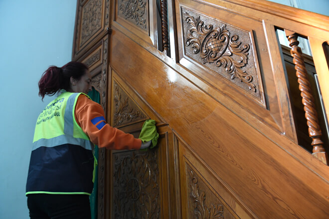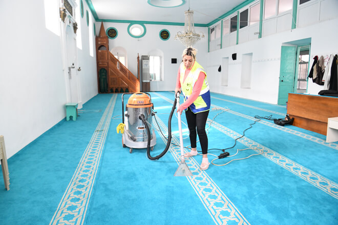 Sınırları içinde bulunan 106 cami, 2 cemevi ve 1 kilisenin düzenli olarak temizlenmesi sayesinde Bornovalılar daha temiz bir ortamda ibadet etmenin huzurunu yaşıyor. Koordinasyon İşleri Müdürlüğü'ne bağlı ekipler özellikle vatandaşların ibadetlerini yaparken alınlarını koyduğu halıların temizliğine büyük önem veriyor. Halı yıkama makinesiyle hijyenik bir ortam sağlanıyor. Bunun yanında pencere ile sütunların temizliği, merdivenlerin ve ayakkabılıkların temizliği de büyük bir titizlikle yapılıyor.