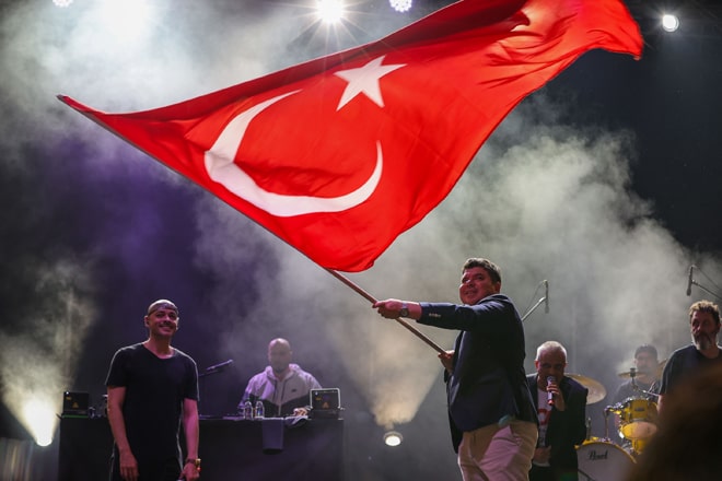 Daha sonra ünlü rap müzik sanatçısı Ceza sahne aldı. Başkan Erhan Kılıç, bu özel gecenin hatırası olarak sanatçı Ceza'ya Türk bayrağı hediye etti. Konser alanını dolduran binlerce İzmirli de Ceza'nın şarkılarına eşlik ederek, unutulmaz saatler yaşadı.