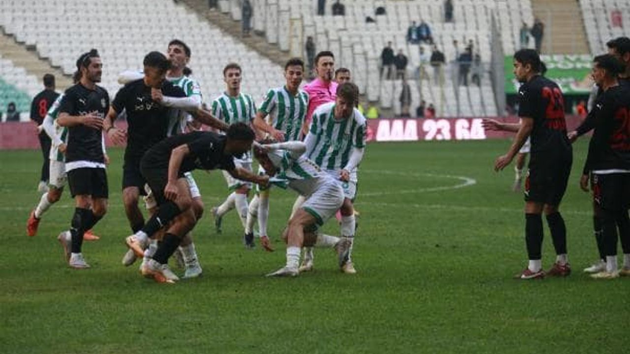 TFF 2'nci Ligde zor günler yaşayan Bursaspor, bugün 100. Yıl Atatürk Stadyumu’nda Diyarbekirspor'u ağırladı. Polisin geniş güvenlik önlemleri aldığı karşılaşmanın ilk yarısı, konuk ekipten Yasin'in 25’inci dakikada attığı gol ile 1-0 kapandı. Çekişmeli geçen ikinci yarıda Diyarbekirspor, 81’inci dakikada Bünyamin’in ayağından 2'nci golünü kazandı.