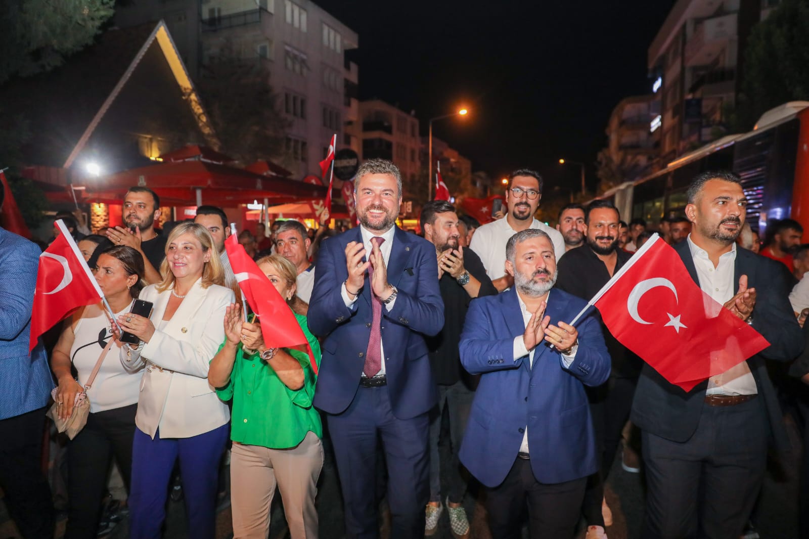 Saat 21.00'de Belediye Binası önünde toplanan kalabalık, ellerinde Türk Bayrakları ve meşalelerle marşlar söyleyerek yürüdü. Buca Belediye Başkanı Görkem Duman, yürüyüşün ön saflarında yer alırken Cumhuriyet Halk Partisi Buca İlçe Başkanı Çağdaş Kaya, Buca Belediyesi meclis üyeleri, Başkan yardımcıları, sivil toplum kuruluşları ve vatandaşlar da kortejde yerlerini aldı.