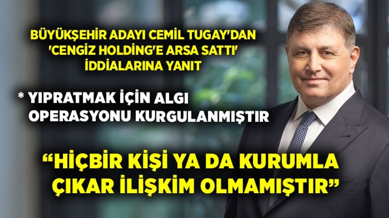 Cemil Tugay, İzmir Büyükşehir Belediye Başkan Adayı olarak gösterilmesi nedeniyle, "Art niyetli olduğu herkesçe bilinen çeşitli çevrelerce ortaya atılıp daha sonra kamuoyuna yayılan bir bilgi kirliliği nedeniyle açıklama yapma zarureti doğmuştur." dedi