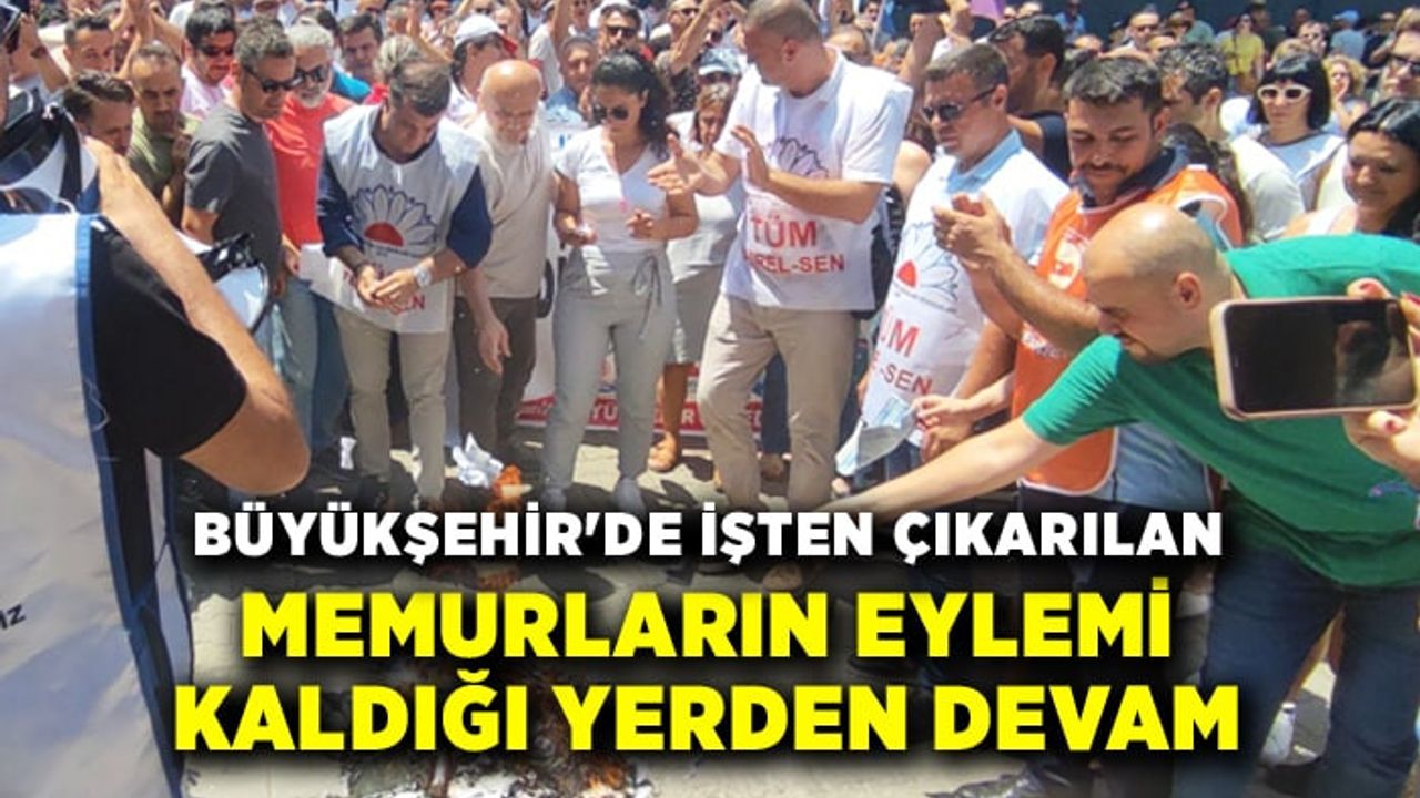 Memurlar, İzmir Büyükşehir Belediye Başkanı Cemil Tugay’ın makamının bulunduğu İzmir Sanat önünde sloganlar atarak, maaş bordrolarını yaktılar.
