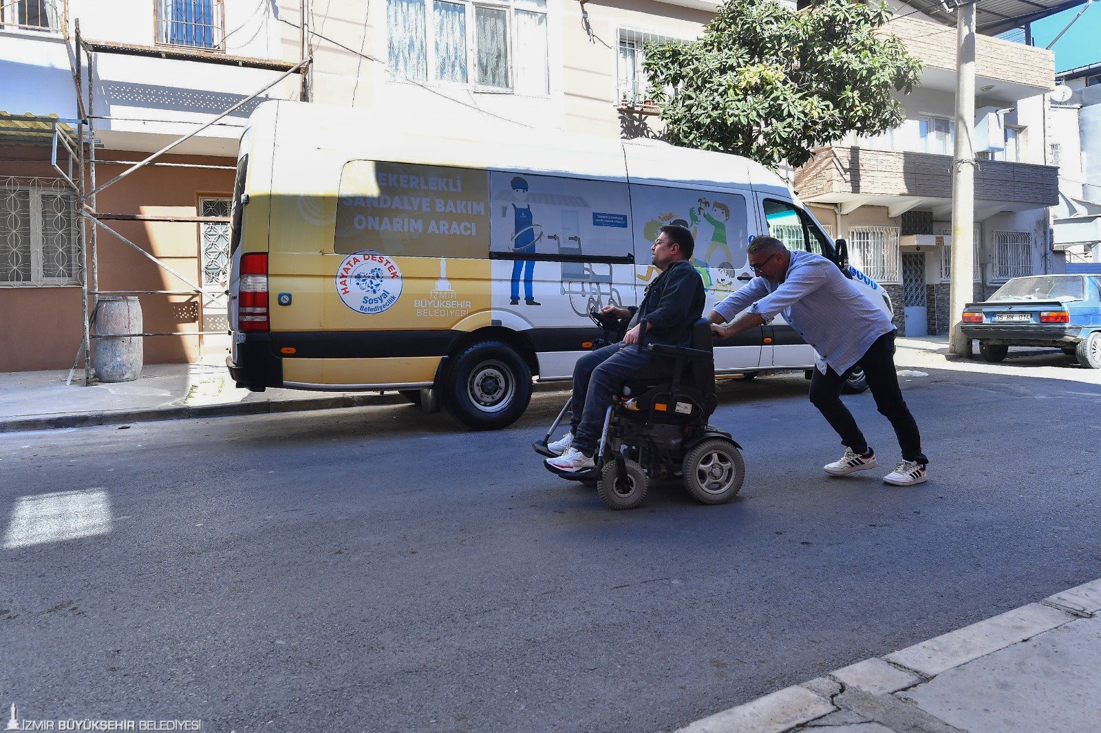 Engelli bireylerin sosyal yaşama engelsiz katılımı yolunda sayısız hizmeti hayata geçiren İzmir Büyükşehir Belediyesi, arızalanan tekerlekli sandalyeleri de tamir ediyor. Konak Center’da faaliyet gösteren Tekerlekli Sandalye Bakım ve Onarım Atölyesi, yolda kalan engelli bireylerin imdadına yetişiyor. Günde 10 aracın tamir ve bakımının yapıldığı atölye ücretsiz hizmet veriyor. Araçlar, engelli bireylerin evlerinden ya da arızanın yaşandığı yerden alınıyor, tamir edildikten sonra teslim ediliyor.