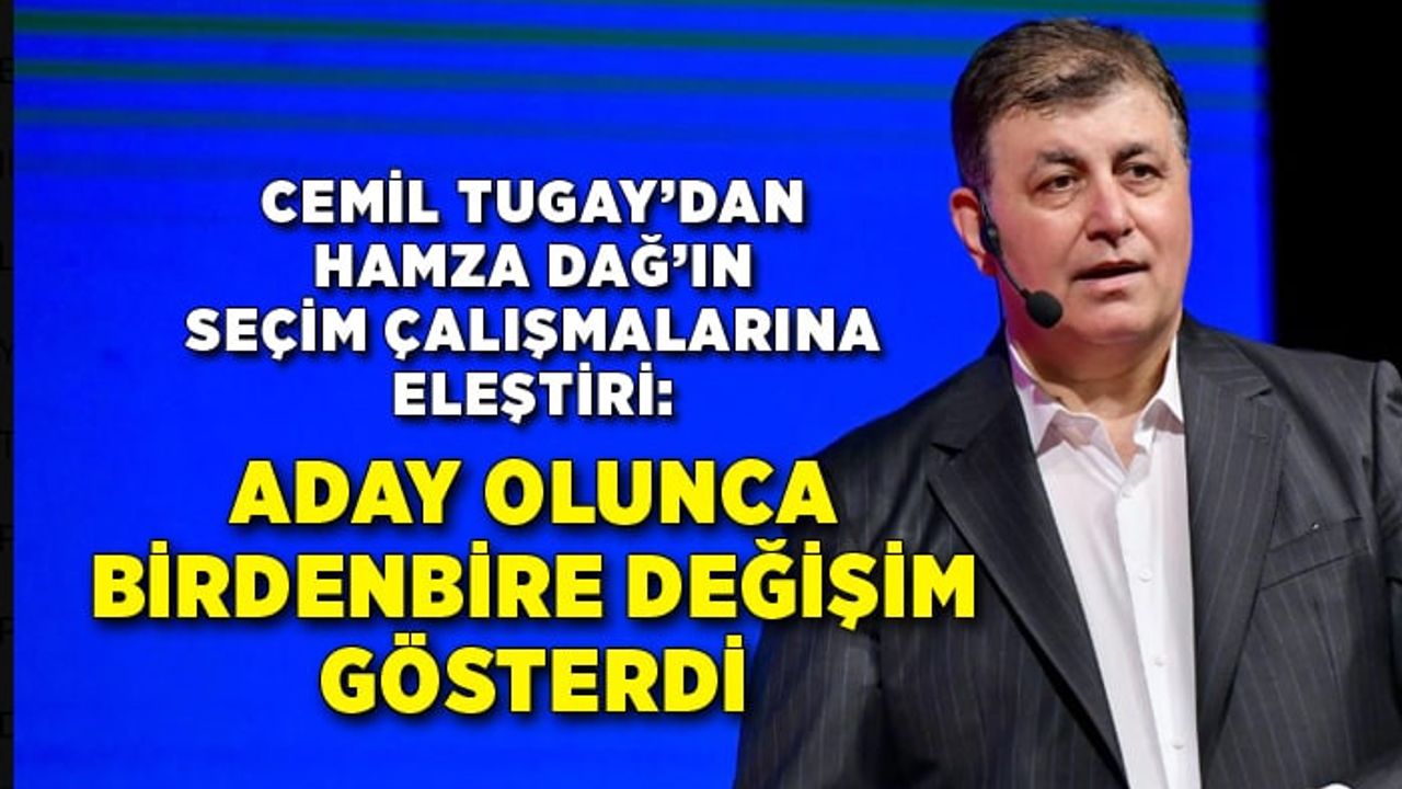 Cumhur İttifakı Adayı Hamza Dağ'ın seçim çalışmalarını değerlendiren Tugay, "Samimi bulmuyorum. Bugüne kadarki siyasi tavrı genel olarak savunduğu değerler ve ondan sonra bakış açısı İzmir'deki yaşam tarzına bakış açısı da belli. Yani bu Hamza nasıl oldu da aday olunca birden bire bu değişimi gösterdi? Yani bu tabii ki belli ki seçimle ilgili bir şey. Ben bunun tabii böyle olmaması gerektiğini düşünüyorum. Lütfen herkes kendisi gibi olsun. Değişmesin yani. Dün neydiyse bugün de öyle olmaya devam etsin. Çünkü yarın da öyle olacak. İnandığı şekilde yaşamak bunu inandığı şeyler için mücadele etmek doğrudur. Ama bunları İzmir'e ben hoş görüneyim diye olduğundan farklı şekle sokmak tabii ki etik değil. Tabii ki doğru değil. Böyle bir eleştiri yapmak benim görevim değil ama İzmirlilerin bunun doğal olarak farkında olduğunu hepimiz biliyoruz. O yüzden bence bu bir bakış açısından vazgeçmeliler" dedi.