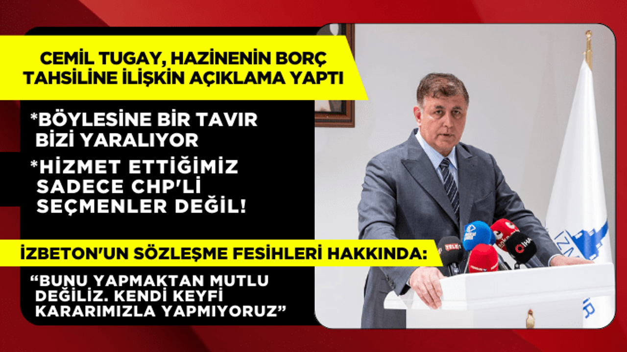 Cumhurbaşkanı Recep Tayyip Erdoğan'ın belediyeleri hedef alan ve Hazine'nin borç tahsiline başlayacağına ilişkin açıklamalarını değerlendiren Başkan Cemil Tugay, “Uzun zamandır ülkemiz ağır ekonomik kriz şartları altında yaşıyor. Bütün kurumlar sıkıntılı. Devletin kurumları da sıkıntılı. Geçenlerde bir kaymakam bize araçlarımız için yakıt dahi alamıyoruz dedi ve bunun için bize yardımcı olur musunuz diye sordu. İyi niyetle biz okulumuza, camimize, devletin diğer kurumlarına yardımcı olmaya çalışıyoruz. Bu arada da belediye otobüslerimizde, çöp kamyonlarımızda en yüksek ÖTV ile yakıt kullanıyoruz. Belediye hiçbir şeyden muaf değil. Özel şirket nasılsa biz de ona maruz kalıyoruz. Devletimizden bekleriz ki; böyle şartlar altında bize biraz anlayış göstersin ve biz de yerel hizmetlerimizi çok daha iyi yapalım. Hizmet ettiğimiz insanlar sadece CHP'li seçmenler değil. AK Partili, MHP'li seçmenler de var. Cumhurbaşkanı'na destek veren seçmenlere de hizmet ediyoruz. Zor ve sıkıntılı tablodan çıkmak için bize yeni kaynaklar yaratmasını beklerken böylesine bir tavır bizi çok üzüyor, yaralıyor. Bu bakış açısını değiştirmelerini ümit ediyoruz” diye konuştu.