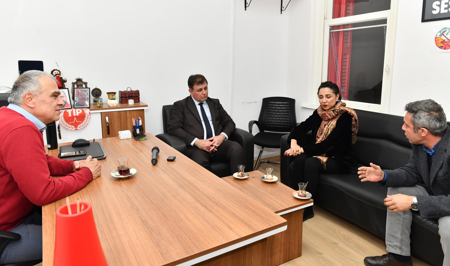 CHP İzmir Büyükşehir Belediye Başkan Adayı Cemil Tugay, TİP İzmir İl Örgütünü ziyaret etti. Ziyarette Tugay’ı, İl Başkanı Kenan Yılmaz ile İl Yönetim Kurulu üyeleri Recep Derya Demir ve Aslı Yapar ağırladı. Başkan Tugay, TİP’in yöneticilerine ve seçmenlerine bu seçimde gösterdikleri hassasiyet için teşekkür ederek başladığı konuşmasını şöyle sürdürdü: “Bir avuç mutlu azınlık dışında yurttaşlarımızın çoğunluğu çok zor şartlar altında yaşamaya çalışıyor. Değerli şairimiz Turgut Uyar’ın dediği gibi, Türkiye’de ve İzmir’de ‘açlık çoğunluktadır’. Biz bu zor durumdaki insanlarımızın sesi olmaya çalışacağız. Onların meselelerini derdimiz bilerek yüklerini hafifletmek için uğraşacağız.”