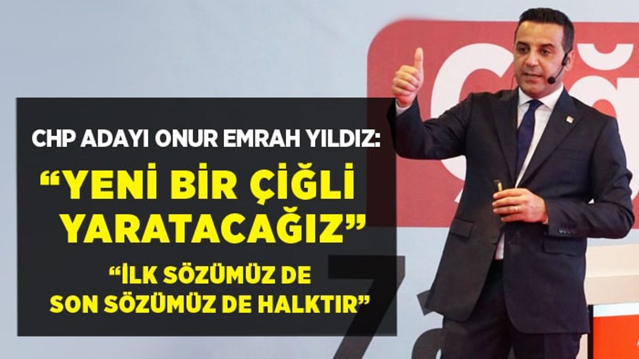 Yücel'den sonra konuşma yapan CHP Çiğli başkan adayı Onur Emrah Yıldız, “Çevresi, çehresi ve doğasıyla yeni bir Çiğli yaratacağız. Biz, sosyal demokratız, ilk sözümüz de son sözümüz de halktır. Kent Halkına karşı gelecek hiçbir projeye öncelik tanımayacağız ve toplumsal yarar bizim için ilk öncelik olacak. Kimseyi ötekileştirmeden, rozetine, mezhebine bakmadan, kimseyi geride bırakmadan, herkesin yaşamaktan mutlu olacağı ortak bir kent yaratacağız. Gazi Mustafa Kemal Atatürk’ün izinde, onun gösterdiği yoldan ayrılmadan, ona laik bir kent yaratacağız” açıklamasında bulundu.