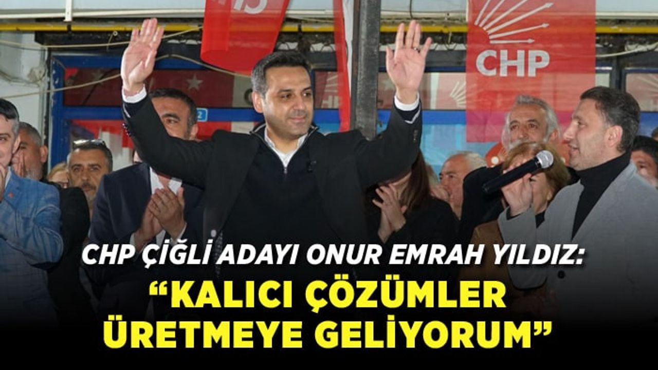 Başkan Adayı Onur Emrah Yıldız; burada yaptığı konuşmada; iktidarı ve rakiplerini de hedef aldı. Yıldız; Çiğli ve İzmir gerçek belediyecilikle buluşacak; diyorlar. AKP yüzünden yıllardır saçma sapan acı gerçekliklerle karşı karşıya kaldık. Devrim yaptık dedikleri her alanda çuvalladılar. Eğitim ve sağlık bitti. Yargı, mutfaklar, tarlalar, esnaf alarm veriyor. Peki umurlarında mı değil! İktidara geldiklerinde doğan çocuklar bugün yetişkin birey oldular. İş kapısındalar, umutsuzlar. Bu tablo AK Parti’nin eseri. Bize düşen bu tabloyu tersine çevirmek. Biz halkçı, sosyal belediyecilik vaat ediyoruz. Çözüm bu. Sosyal medyada dolaşıyor. Çiğli’ye konum atarak geliyorum diyenler var. Çiğli’ye konumla gelenlere söylüyorum. Çiğli size 31 Mart’ta yol verecek. Geri gideceksiniz. 31 Mart’ta başta Çiğli olmak üzere İzmir yeniden Cumhuriyet ve Cumhuriyet değerlerinin olacaktır.” diye konuştu.