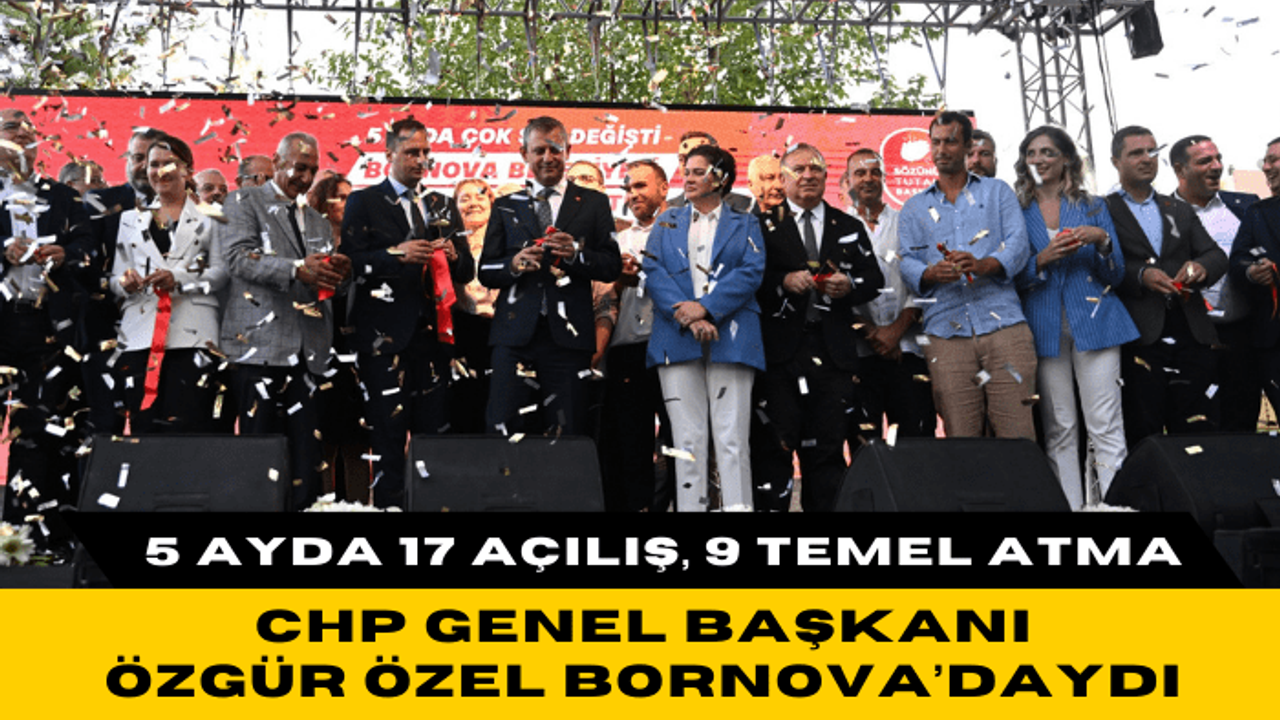 Çamdibi Atatürk Parkı’ndaki toplu açılış törenine Özel’in yanı sıra Genel Başkan Yardımcıları Gökan Zeybek, Gökçe Gökçen, Deniz Yücel, Murat Bakan, İzmir Milletvekilleri, İzmir İl Başkanı Şenol Aslanoğlu, CHP Bornova İlçe Başkanı Ertürk Çapın, ilçe belediye başkanları, Bornova Belediyesi önceki dönem belediye başkanları ile geçmiş dönem milletvekilleri de katıldı.