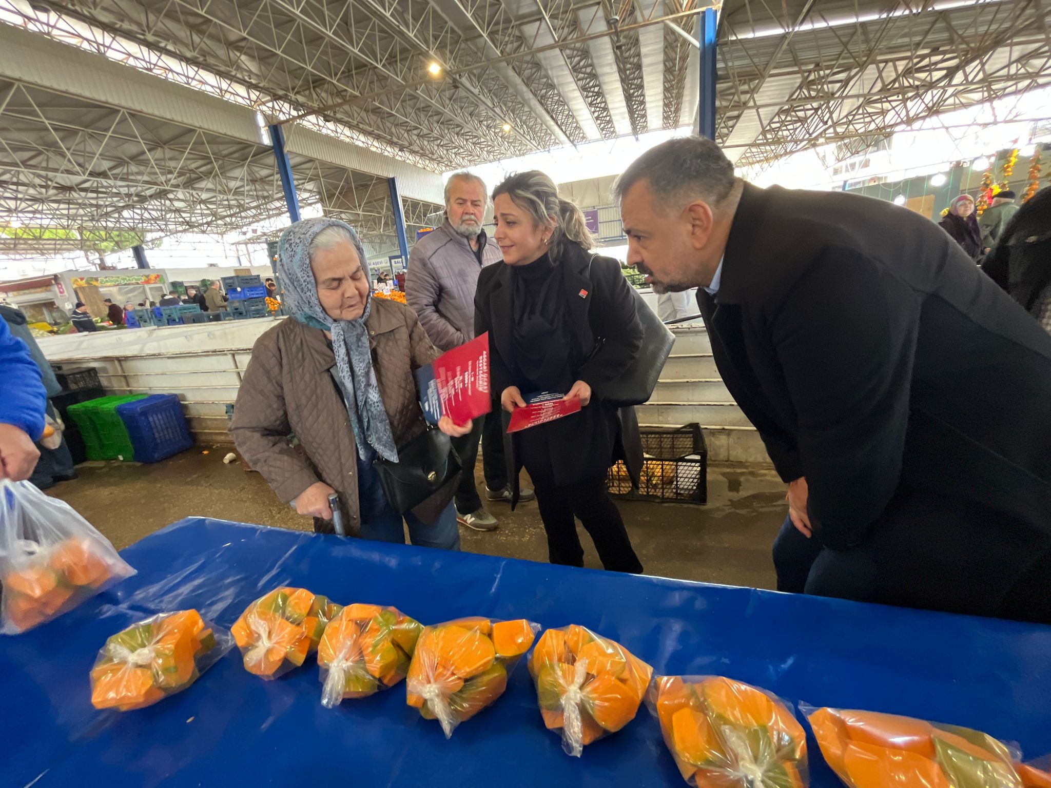 Pazarlarda görülen manzaranın hep aynı olduğunu söyleyen ve insanların artık gramla alışveriş yaptığını dile getiren Aslanoğlu “Bugün Balçova ve Narlıdere ilçe örgütümüzle ilçelerin Pazar yerlerinde gerçekten iç burkan olayları dinledik ve şahit olduk.İnsanlarımız eskiden kilo kilo aldıkları sebze ve meyveleri,17 bin liralık asgari ücretle, 12 bin 500 liralık emekli maaşıyla şimdi gram gram almaya çalışıyor. Bu insanlar kilosu 300 lira olan sarımsağı, tanesi 80 lira olan karnabaharı, kilosu 55liraya satılan domatesi, mevsiminde 40 liraya satılan mandalinayı nasıl alacaklarda o pazar arabaları dolacak, mümkün değil. Pazarcı esnafımız insanlarımızın 250 gramlık alışverişler yaptığını anlatıyor. Akşam saatlerinde Pazar tezgahları toplanırken gelen insanların sayısında inanılmaz bir artış olduğunu anlatıyor. Bunun nedenini söylemek bile insana acı gelir. Bu acı tabloya sebep olanlar aynı yüzsüzlük ve gaddarlıkla ülkeyi batırmaya devam ediyor.Bunlar ne Allah’tan korkuyor ne de kuldan utanıyor. Ama herkes bilsin ki bunlara sebep olan haramilerden sorulacak bir hesabımız var bizim. Pazara gelen İzmirlilere ve esnafımıza söz verdik. AKP iktidarından bunun hesabını vatandaşımız adına soracağız” dedi.