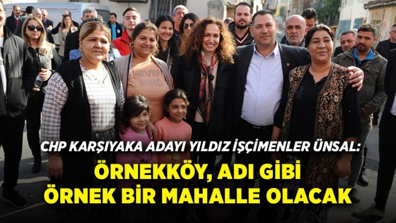 Mahalle sakinleriyle buluşmalarında Örnekköy’ün sorunlarını çözmek için çalışacağını ve her kesime dokunacak sosyal projeleri hayata geçireceğini anlatan CHP Karşıyaka Belediye Başkan Adayı Yıldız İşçimenler Ünsal “Örnekköy’ün kronik hale gelen sorunlarını biliyorum. Bu sorunları tek tek çözmek için birlikte, dayanışma içerisinde çalışacağız. Her kesime yönelik, özellikle de kadınlar ve çocukların yaşamlarına dokunacak sosyal projeler üreteceğiz. El ele vererek Örnekköy’ü adı gibi örnek bir mahalle haline getireceğiz” diye konuştu.