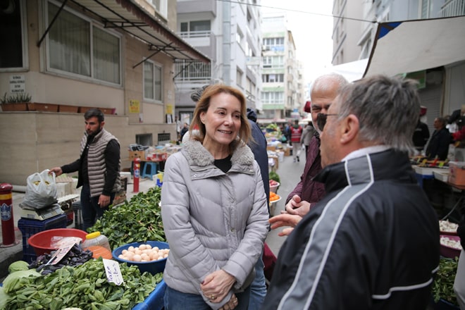 Cumhuriyet Halk Partisi (CHP) Konak Belediye Başkan Adayı Mimar Nilüfer Çınarlı Mutlu, yoğun saha çalışmalarına hız kesmeden devam ediyor. Sabah saatlerinde Alsancak Pazar Yeri’ne giderek esnaf ve vatandaşlarla bir araya gelen CHP’li Mutlu, tezgahları tek tek gezerek talepleri dinledi. Pazar yerinin acil ihtiyaçlarını da fotoğraflayarak belediyenin ilgili birimlerine aktaran Mutlu, ardından yoğun bir mahalle mesaisi gerçekleştirdi. Konak ilçesinin Güney, Zeytinlik, Levent, 26 Ağustos, Trakya, Atamer, Saygı, Çınartepe, Murat, Anadolu, Millet, Mehmet Akif, Huzur, Ulubatlı, Yavuz Selim ve Zeybek mahallelerini adım adım gezen Mutlu’ya, 24, 25 ve 26. Dönem CHP İzmir Milletvekili Musa Çam da eşlik etti. Gittiği yerlerde mahalle sakinlerinin yoğun ilgisiyle karşılaşan Mutlu, kentsel dönüşüm ve eşit hizmet sözü verdi. Halkçı belediyecilik anlayışıyla hizmette fark yaratacaklarını söyleyen Mutlu, “Dönüşüm, hizmet ve mutlu bir Konak için geliyoruz. Bana oy verdiğiniz için asla pişman olmayacaksınız. Buralarda herkesin içine sinen dönüşümü başlatacağız. Bu bizim çözmek zorunda olduğumuz bir iş. Konak Belediyesi, bütçesini her mahalleye eşit harcayacak” vurgusu yaptı.