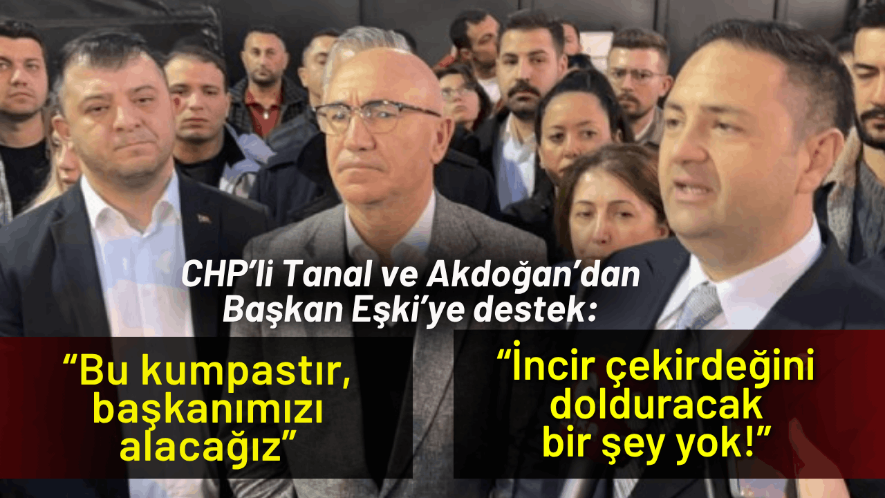 Eşki’nin gözaltına alınma sebebinin ‘bir şahsın SGK üzerinden belediyeye giriş yapması ve güya işe gelemden maaş aldığı ve kamu zararı olduğu iddiası’ olduğunu belirten Tanal, “Bunlarda ahlak varsa, bunlarda kalemin ucu kadar vicdan varsa, başta Türkiye Büyük Millet Meclisi’ndeki bankamatik kaç personel var onu araştırsınlar. Kaç tane bakanlık varsa bankamatik personelleri araştırsınlar. Üç, AKP’li belediyelere o bankamatik kartlı personeli araştırsınlar. Burada hukuk devleti diyor ki; “Siz seçici davranamazsınız.” Şu anda Ömer başkanımıza uygulanan hukuk bakanların hepsine uygulansa TBMM’ye uygulansa bu ülkedeki AKP’li belediye başkanlarının en azından her yerde bin 2 bin personelinin cezaevinde olması lazım, meclis başkanının, bakanlarının cezaevinde olması lazım. Biz AKP’li belediyelere uygulanan hukuk neyse CHP’li belediyelere de aynı hukukun uygulanmasını istiyoruz. Burada amaç kamu zararı, yolsuzlukla mücadele değil. Tek amaç var. CHP Türkiye’nin birinci partisi, iktidara doğru yürüyor. İktidar yürüyüşünü engellemek için bu şekilde hukuksuz operasyonlarla iktidar yürüyüşü kesilmek isteniyor. Şair diyor ki çiçeklerin hepsini koparsanız da baharın gelişini engelleyemezsiniz. Belediye başkanının vicdanı rahat. Bu kumpastır. Bu siyasi bir operasyondur. Başkanımızı alacağız” diye konuştu.