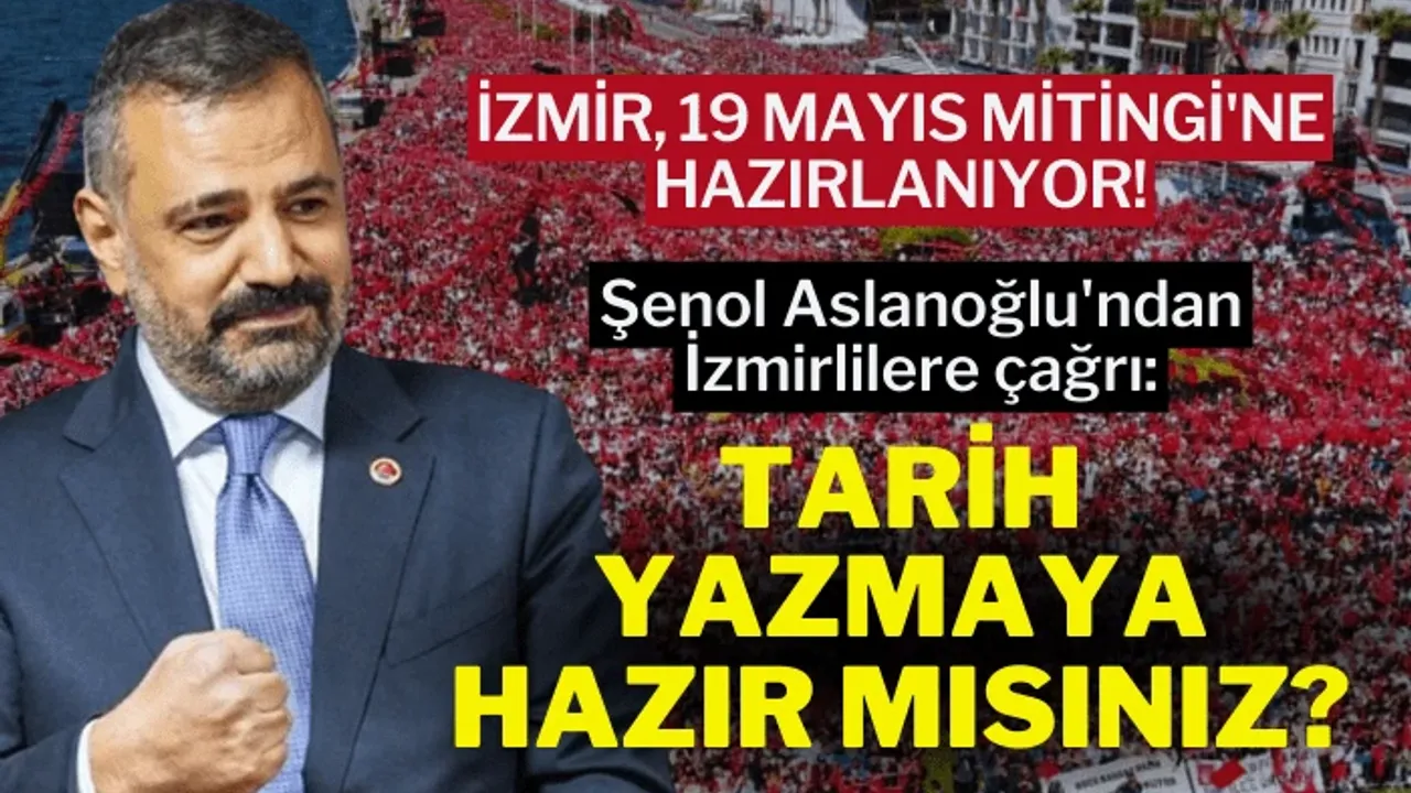 ÇİĞDEM ÖZEN / BEN HABER - CHP İzmir İl Başkanı Şenol Aslanoğlu, sosyal medya hesabından paylaşım yaparak İzmirliere '19 Mayıs Büyük İzmir Mitingi için seslenerek, "Gündoğdu Meydanı’nda birlikte tarih yazalım!" dedi.