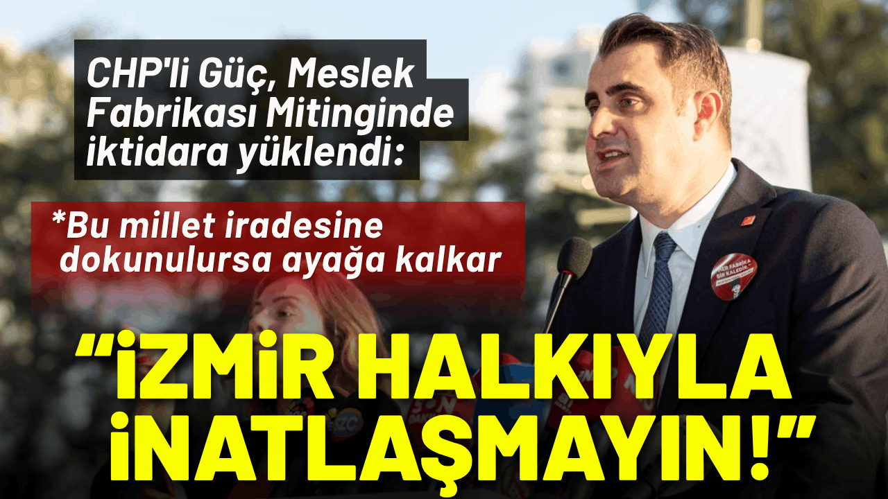 İktidara miting alanında bir kez daha seslenen Güç, "İzmir halkıyla inatlaşmayın, İzmir halkını cezalandırmayın. Çünkü İzmir halkı boyun eğmez. Getirin sandıkları, çünkü bu millet sizden bıktı. Bizler halkın iktidarını kuracağız. Ya hep beraber ya hiçbirimiz. Meslek Fabrikası İzmir'indir İzmir'in kalacak" dedi.