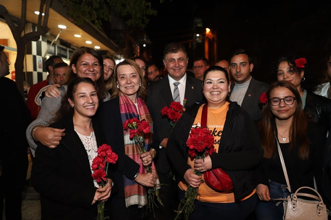 CHP Konak Belediye Başkan Adayı Nilüfer Çınarlı Mutlu, Büyükşehir Belediye Başkan Adayı Cemil Tugay ile birlikte Roman vatandaşların yoğun yaşadığı Yenişehir Mahallesi'ni ziyaret etti. Mahalle girişinde havai fişek ve meşalelerle karşılanan Tugay ile Mutlu, etkinlik alanına vatandaşların yoğun ilgisi eşliğinde yürüdü. Semazen gösterisi ve tasavvuf dinletisiyle başlayan program konuşmalarla devam etti. Coşkulu buluşmada kürsüye çıkarak vatandaşlara seslenen Mutlu, "Bu mahalle, Serez'den çıkıp gelmiş hemşehrilerini ve birlikte çalışacağımız Büyükşehir Belediye Başkan Adayımız Cemil Tugay’ı asla yalnız bırakmaz. Size güveniyoruz. 5 yıl boyunca birlikte yan yana yürüyeceğimiz, herkesin eşit yurttaş olacağı, kendini öteki hissetmeyeceği bir 5 yıl vadediyoruz. 31 Mart'ta oylarınızı CHP'ye vermenizi istiyoruz. Gençlerimiz için spor alanları ve psikolojik destek merkezleri açacağız. Her bir çocuğumuzu kurtarmak için elimizden geleni yapacağız. Bu yola adil kent ve eşit yurttaşlık diyerek birlikte yürümek üzere yola çıktık. Kendinizi ihmal edilmiş hissetmenizi istemiyorum. Konak'ta herkesin mutlu olması için çalışacağız" dedi. Konuşmaların ardından Tugay ile Mutlu, şölen alanına dönen mahalleyi vatandaşlarla birlikte gezdi.