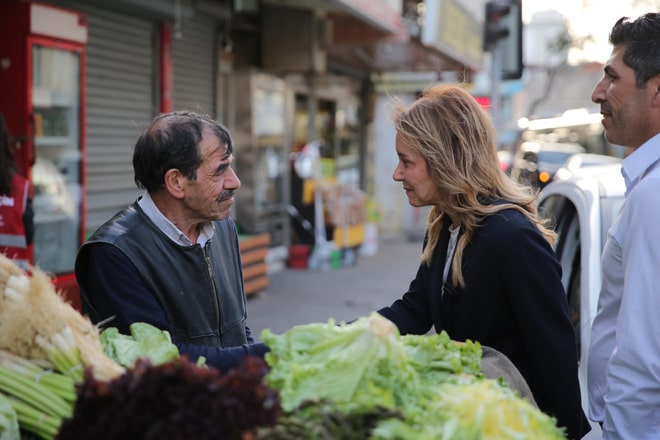 İşyeri sahipleri ve çarşıdan alışveriş yapan vatandaşlarla sohbet eden Mutlu, "Partimiz seçilebilecek yerlerden 9 kadın aday gösterdi. Bizler liyakatla bu görevlere geldik. Seçimde sizlerin desteğini bekliyoruz. Hizmet için geliyoruz. Elimizi üstünüzden hiç çekmeyeceğiz. Göreve gelsek ve biran evvel çalışmaya başlasak diye heyecanla bekliyoruz. İktidarın yarattığı bu ekonomik buhrana cevabımızı sandıkta vereceğiz. Benim işim gücüm Konak olacak" ifadelerini kullandı. Bir sonraki durağı Basmane olan Mutlu, Gaziler Caddesi üzerinde bulunan dükkanları gezdi, seçimde destek istedi. Mutlu'ya ziyaretlerde Oğuzlar Mahalle Muhtarı Hülya Ünlü ve meclis üyesi adayları da eşlik etti.
