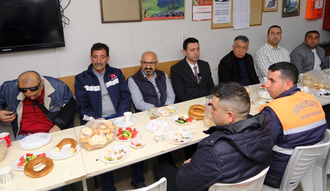 Ziyaretin ardından Bayraklı Belediyesi Temizlik İşleri işçileriye buluşan İrfan Önal burada da emekçilerle sohbet edip, önerilerini dinledi.