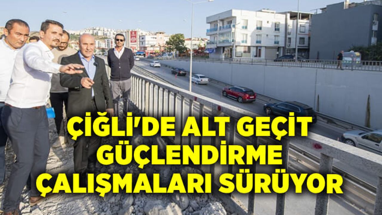 İzmir Büyükşehir Belediyesi Fen İşleri Dairesi Başkanlığı, kent ulaşımının güvenliği için ihtiyaç noktalarında güçlendirme çalışmalarına devam ediyor. Bu kapsamda İZBAN Egekent ve Ulukent istasyonları arasında demir yolunun altında taşıt ulaşımını sağlayan Çiğli 2. Ana Jet Üssü Karayolu Alt Geçidi’nde de güçlendirme çalışması sürüyor. Nisan ayında başlayan çalışmaları İzmir Büyükşehir Belediye Başkanı Tunç Soyer, İzmir Büyükşehir Belediyesi Genel Sekreter Yardımcısı Özgür Ozan Yılmaz, İzmir Büyükşehir Belediyesi Fen İşleri Dairesi Başkanı Hamdi Ziya Aydın ve bürokratlarla birlikte inceledi.