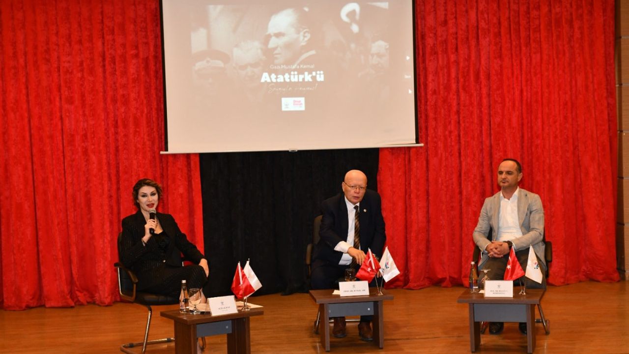 9 Eylül Üniversitesi Atatürk İlkeleri ve İnkılapları Tarihi Enstitüsü Müdürü Prof. Dr. Kemal Arı söyleşinin moderatörlüğünü gerçekleştirdi. Arı yaptığı konuşmada, uzun yüzyılların yetiştirdiği en büyük dahinin Mustafa Kemal Atatürk olduğuna vurgu yaptı. Arı," Mustafa Kemal Atatürk, yüzyılların yetiştirdiği ender bir dahi olarak, tarih sahnesinden silinmek üzere olan bir ulusa, ulus olduğunu hatırlattı ve yedi düvele karşı vatanını kurtararak bağımsız ve özgür bir devlet kurdu. O devleti, cumhuriyete ve demokrasiye yönelten eşsiz bir liderdi. 57 yıllık yaşamına destansı başarılar sığdıran Atatürk, Geometri ve Medeni Bilgiler gibi kitaplarıyla da bilgi dünyasına katkıda bulundu. Değişik cephelerde savaşan bir asker olan Mustafa Kemal'i, Çanakkale Savaşı'nı anlamak için onun mavi gözlerinden bakmak gerekir. Mustafa Kemal'i anlamak için 'Ben size taarruzu değil ölmeyi emrediyorum' sözlerine ve o anki ruh haline bakmak gerekir. 19 Mayıs 1919'u bilmek ve Cahit Külebi'nin 'Bir gemi yanaştı Samsun'a sabaha karşı' dizelerinde anlatılan Mustafa Kemal'i ve bitkin düşen Anadolu insanının yüreğindeki kıvılcımı canlandırmak gerekir. Türk ulusu için en çağdaş devrimleri getiren Atatürk'ü düşünmek ve anlamak için, onun hayatına bakmak yeterlidir. Mustafa Kemal asla 'ben yaptım' dememiş, her zaman her yapılanı millet yaptı demiştir. 'Büyük Türk milleti, az zamanda büyük işler yaptın' diyerek her şeyi büyük Türk milletine adamıştır. Böyle bir öndere sahip olmakla ne kadar gurur duysak azdır" ifadelerini kullandı.