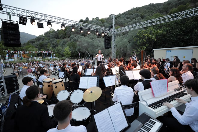 Narlıdere Belediyesi’nin, çocuklara sanat eğitimi sunmak ve yeteneklerini keşfetmelerine olanak sağlamak için hayata geçirdiği Çocuk Senfoni Orkestrası, 2023-2024 döneminde yaptığı çalışmaları muhteşem bir konserle taçlandırdı. Belediyeye ait Park Orman Narlıdere Tesisleri’nde gerçekleştirilen konseri Narlıdere Belediye Başkan Yardımcıları Celal Yıldız, Çağrı Sofu ve İsmail Ay, Meclis Üyeleri, CHP Narlıdere İlçe Kadın Kolları Başkanı Hatice Yıldırım, davetliler ve vatandaşlar ilgiyle takip etti. Eğitmen hocaları Ender Ünal ve Cüneyt Deniz yönetiminde klasik batı müziği, film müzikleri ve popüler müzik türünde eserleri başarıyla seslendiren Çocuk Senfoni Orkestrası, yaklaşık 1,5 saat süren konserle adeta kulakların pasını sildi. Park Orman Narlıdere’nin büyülü ortamında İzmirlilere unutulmaz bir gece yaşatan Çocuk Senfoni Orkestrası, gecenin sonunda sanatseverlerden büyük alkış aldı.